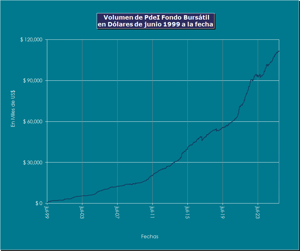 Es un conjunto de patrimonios pertenecientes a varios inversionistas, cuyo derecho de propiedad se representa mediante un Certificado de Inversión en dólares, administrado por un Agente Administrador al cual se le atribuyen las facultades de dominio sin ser propietaria del fondo. El dinero recibido se invierte en activos financieros de Renta Fija y/o en valores cotizados de Renta Variable inscritos para oferta pública en las Bolsas de Comercio autorizadas en cualquier país, o bien inscritos en la autoridad competente en ese país o que estén exentos de inscripción en dado país toda vez que hayan sido emitidos en dólares de los Estados Unidos de Norte América, o en la moneda de curso legal del país, buscando la mayor seguridad para los inversionistas. Así de esta manera el inversionista puede conseguir una diversificación en sus ahorros en activos financieros emitidos en dólares. PdeI Fondo Bursátil en Dólares es un instrumento de ahorro que permite al inversionista accesar al mercado financiero y bursátil nacional e internacional en las condiciones más favorables y en el largo plazo se convierte en una herramienta de crecimiento de su patrimonio.