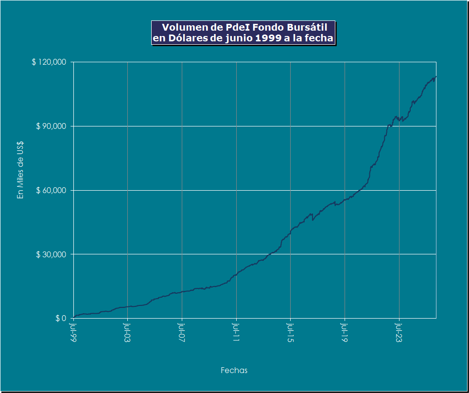 Es un conjunto de patrimonios pertenecientes a varios inversionistas, cuyo derecho de propiedad se representa mediante un Certificado de Inversión en dólares, administrado por un Agente Administrador al cual se le atribuyen las facultades de dominio sin ser propietaria del fondo. El dinero recibido se invierte en activos financieros de Renta Fija y/o en valores cotizados de Renta Variable inscritos para oferta pública en las Bolsas de Comercio autorizadas en cualquier país, o bien inscritos en la autoridad competente en ese país o que estén exentos de inscripción en dado país toda vez que hayan sido emitidos en dólares de los Estados Unidos de Norte América, o en la moneda de curso legal del país, buscando la mayor seguridad para los inversionistas. Así de esta manera el inversionista puede conseguir una diversificación en sus ahorros en activos financieros emitidos en dólares. PdeI Fondo Bursátil en Dólares es un instrumento de ahorro que permite al inversionista accesar al mercado financiero y bursátil nacional e internacional en las condiciones más favorables y en el largo plazo se convierte en una herramienta de crecimiento de su patrimonio.
